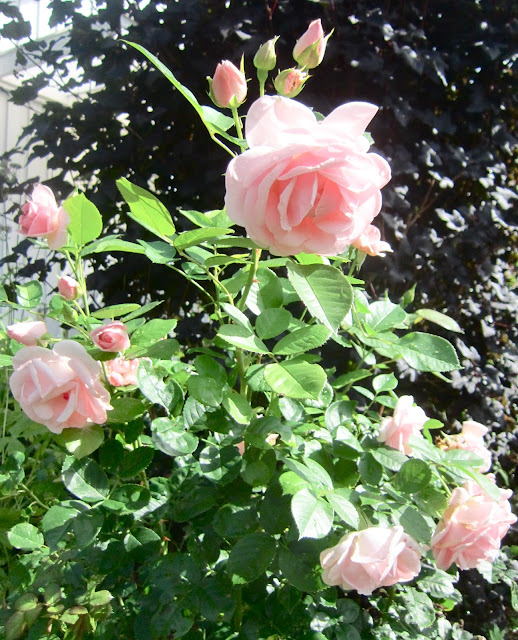 It's the end of September and there are several rose shrubs in bloom. Once flowering roses are lovely, but remontant roses add so much beauty to our garden during many, many months. Here are a few from today: